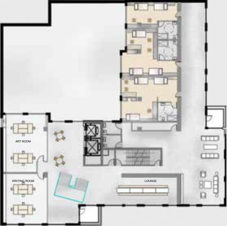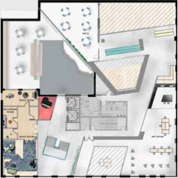 The design of Aila: Co-Living Through Creative Expression highlights the connection, communication, and support between the students by enhancing collaboration through innovative and interactive spaces and circulation. The design also emphasizes the creativity and individuality that is being expressed with confidence through vibrant and captivating materials and finishes.